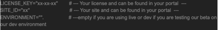 Before deploying, update the script with your licence key and site ID. Once pushed to the target devices, the script will configure the licence details on each Mac. You need to edit the script updating the following fields: