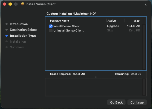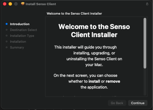 1. Double‑click the correct SensoClientInstaller.pkg file and follow the onscreen prompts