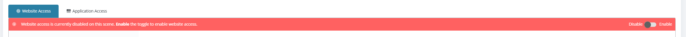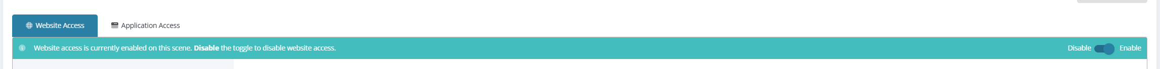 The container will show a tab for each function that the Scene can contain, Website Access and
