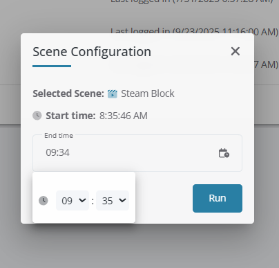 Upon selecting a Scene, a dialog box will appear, prompting the user to choose the duration for which