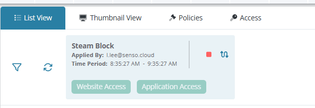 The user who applied the Scene can stop the Scene at any time during its active period using the stop icon