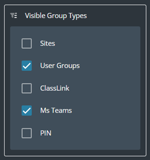 However, you can filter the exact groups that you would like to see. For example, if you would just like to see the groups that you have access to within ‘User Groups’ and ‘MS Teams’ groups. Remove the ticks from the other groups. As you untick the options, that group will automatically be removed from what is visible.