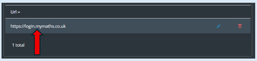 The website address that you have entered will now appear in the ‘URL’ list.