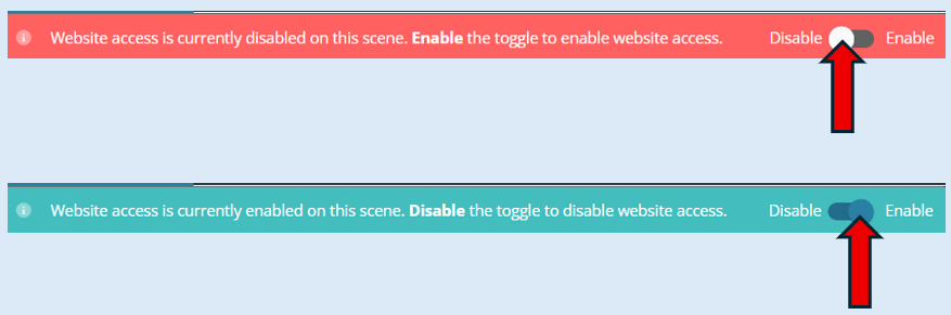 Website Access starts only when manually activated and continues until it is manually paused or the Scene ends.