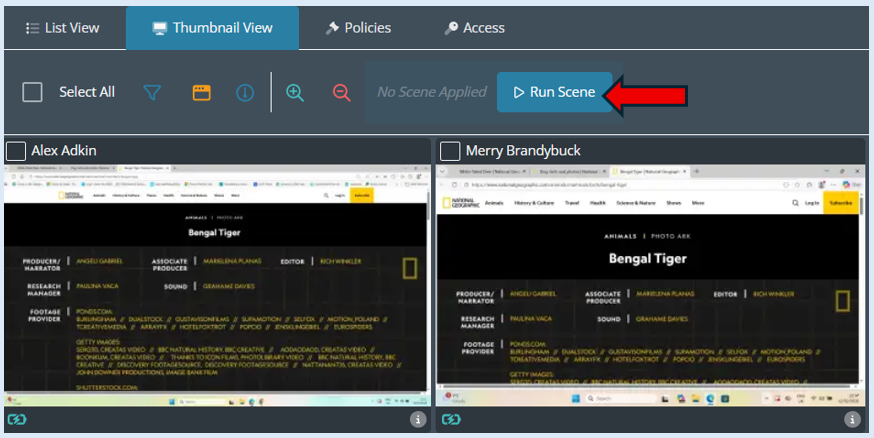 An icon will appear at the bottom of each thumbnail indicating that the scene is running on that device.