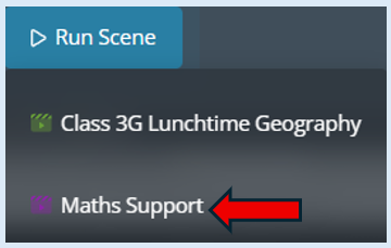 All the scenes that you have created will be available to select from. To see the list of scenes select the ‘Run Scene’ button. Then select the scene that you would like to run.