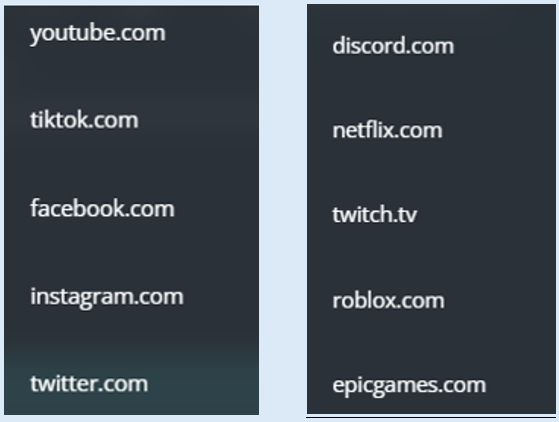 When creating your lists within your scene there is a set of pre-determined websites and application suggestions that you can access and select from. Just select the ‘?’ Icon.
