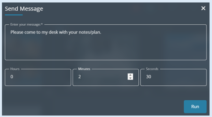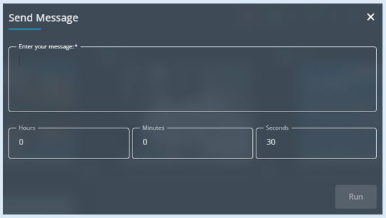 Select the ‘Send Message’ icon and add in your message, set the timer and click ‘Run’.